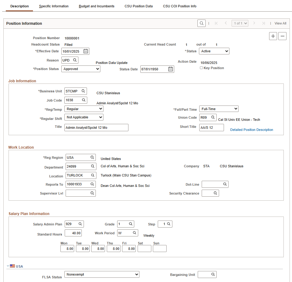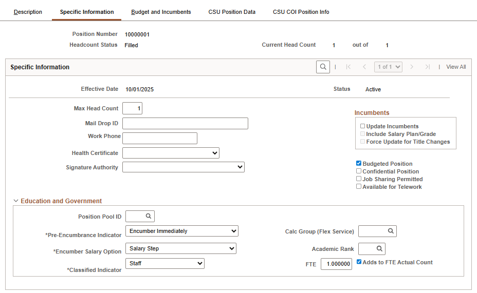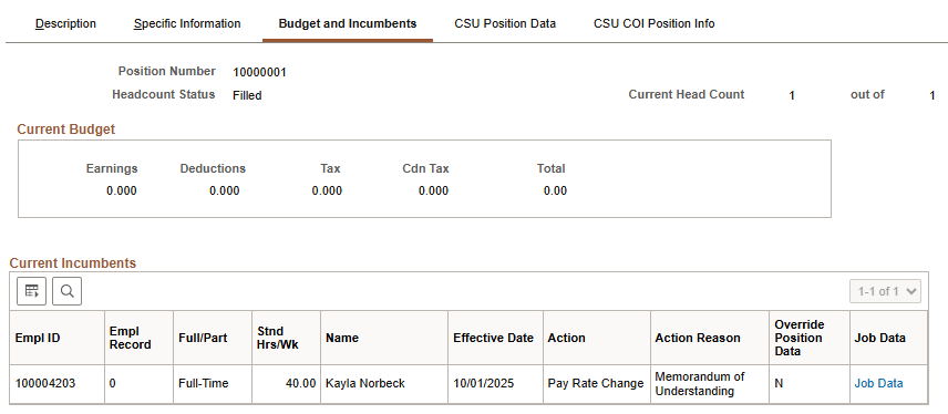 Navigation: Organizational Development -> Position Management-> Maintain Positions/Budgets-> Add/Update Position Information |
